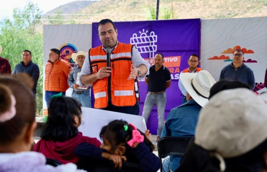 El alcalde Gaspar Trueba Moncada acudió a la comunidad de El Poleo para poner en marcha la nueva vialidad que conecta directamente con la iglesia del lugar, una obra que representa un beneficio importante para las familias que viven allí.