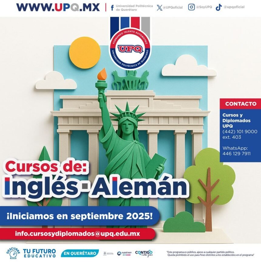 Con la finalidad de brindar herramientas para generar nuevas oportunidades laborales, educativas y personales, la Universidad Politécnica de Querétaro (UPQ) abre inscripciones a cursos sabatinos para los idiomas inglés y alemán. Las clases se impartirán los sábados de 8:00 a 13:00 horas, modalidad presencial, en las instalaciones de la UPQ.