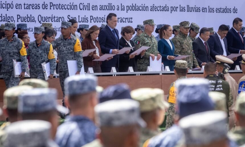El gobernador, Mauricio Kuri González, acompañó a la presidenta de México, Claudia Sheinbaum Pardo, en la Base Aérea Santa Lucía, a la ceremonia de Reconocimiento al Personal que Participó en Tareas de Protección Civil a través de los planes DN-III-E y Marina, así como de la Comisión Federal de Electricidad (CFE), derivado de la contingencia por las lluvias en los estados de Querétaro, Veracruz, Puebla, San Luis Potosí e Hidalgo.