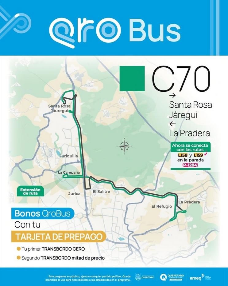 Con el objetivo de mejorar la conectividad y acercar el sistema de Qrobus a más personas, el titular de la Agencia de Movilidad del Estado de Querétaro (AMEQ), Gerardo Cuanalo Santos, informó que se realizó la ampliación de los recorridos en las rutas L59 y C70, esto derivado de las solicitudes ciudadanas del programa Voy Contigo, implementado por la Agencia.