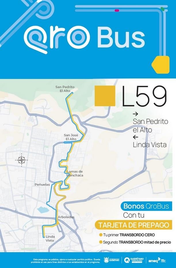 El director de la AMEQ  refirió que a partir de este jueves 26 de marzo, la ruta L59 extendió su recorrido hasta la comunidad de San Pedrito el Alto, brindando opciones de traslado para las y los usuarios en horarios determinados; de lunes a viernes a las 06:30, 07:30 y 13:30 horas saliendo de San Pedrito el Alto, y a las 18:00 horas saliendo de la contrabase a la altura del Templo de Santa Cecilia en Linda Vista. Mientras que, para sábados y domingos el horario será a las 6:30 saliendo de San Pedrito el Alto y a las 18:00 saliendo la contrabase.
