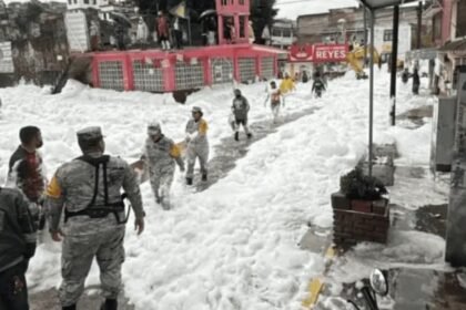 Vecinos de Naucalpan se divierten en espuma tóxica tras desbordamiento de presa