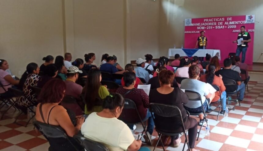El taller, coordinado por Julio Omar Pozas Melgar y Abigail Martínez Maldonado, tuvo como objetivo analizar los procedimientos relacionados con las Buenas Prácticas de Manufactura en la elaboración de alimentos, con el propósito de preservar la salud de la población. Durante la actividad, se entregaron credenciales de manejadores de alimentos y se proporcionó información esencial para la prevención de enfermedades transmitidas por alimentos.
