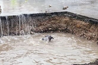 Rescatan a perrito atrapado en socavón en Villas de Santiago