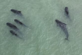 Un grupo de unas veinte ballenas piloto quedaron varadas este viernes cerca…