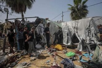 Un ataque aéreo israelí impactó el domingo un campamento de tiendas de…