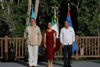 La presidenta Claudia Sheinbaum Pardo, junto con sus homólogos de Guatemala, Bernardo…
