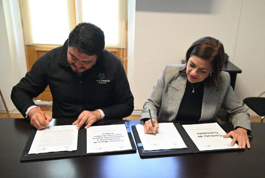 La titular de la Comisión Estatal de Infraestructura (CEI), Sonia Carrillo, y el presidente municipal de San Joaquín, Carlos Manuel Ledesma, firmaron un convenio de colaboración para llevar a cabo acciones de desazolve y limpieza en distintos caminos de la demarcación, con el propósito de mejorar las condiciones de tránsito y reforzar la conectividad para beneficio de las familias.