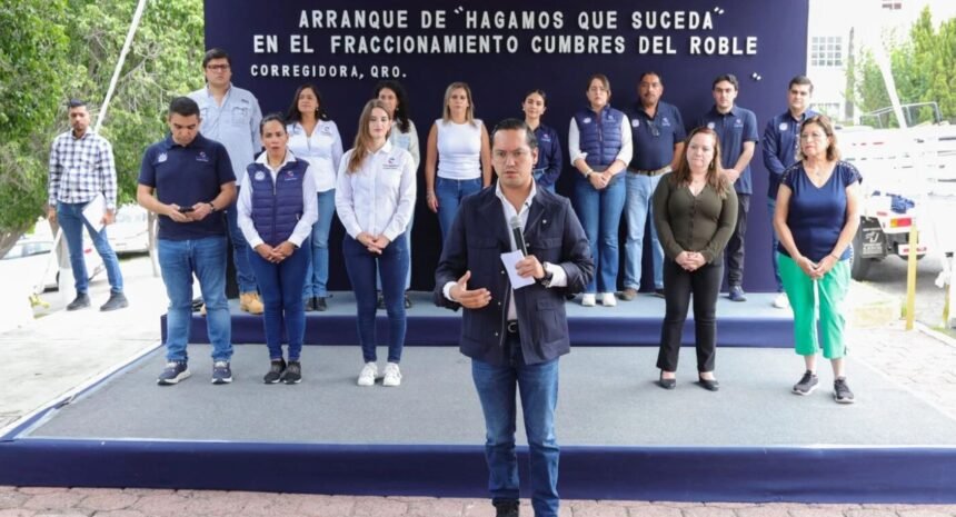 El alcalde de Corregidora, Chepe Guerrero, puso en marcha la estrategia “Hagamos que Suceda” en el fraccionamiento Cumbres del Roble, con la que los habitantes recibirán directamente 16 servicios municipales.