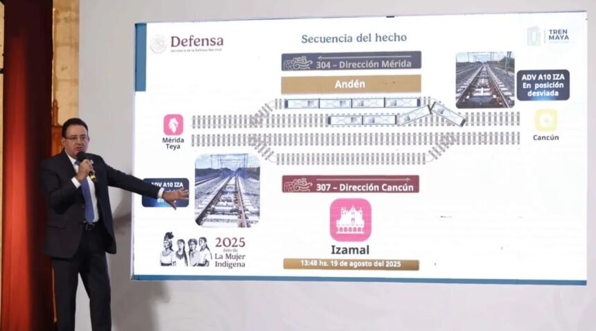 El director general del Tren Maya, Óscar David Lozano Águila, informó que el percance ocurrido el 19 de agosto en la estación de Izamal fue causado por una “anomalía” en el sistema de vías. El incidente se produjo cuando el tren 304, que se dirigía a Cancún, chocó con el tren 307 que se encontraba detenido en el andén.