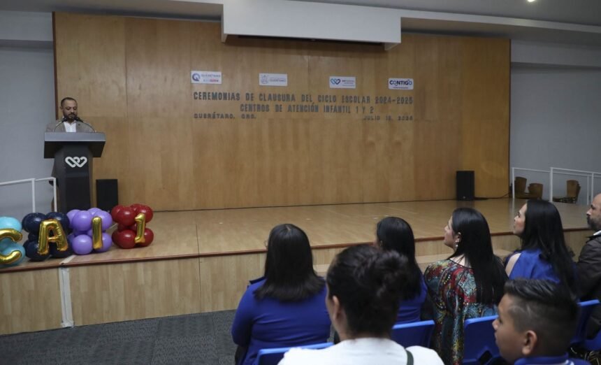 El director general del Sistema Estatal DIF, Óscar Gómez Niembro, encabezó la ceremonia de clausura del ciclo escolar 2024-2025 de los Centros de Atención Infantil (CAI) 1 y 2, que atienden a las y los niños de madres trabajadoras y familias en situación de vulnerabilidad que carecen de seguridad social.