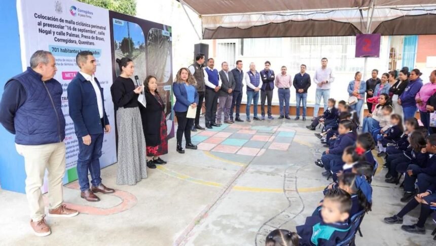 El Municipio de Corregidora entregó la nueva malla ciclónica perimetral del Jardín de Niños “16 de Septiembre”, ubicado en la comunidad Presa de Bravo, obra realizada gracias a la donación de material por parte de USEBEQ y en beneficio de alrededor de 700 habitantes.