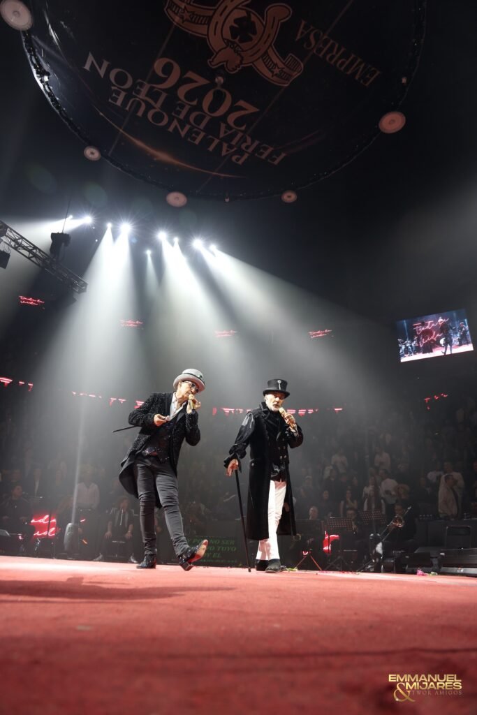 AAMX.,León, Gto.– Emmanuel y Mijares regresaron a León con su Two’r Amigos para ofrecer una noche inolvidable en el Palenque de la Feria de León 2026, logrando un lleno total y un concierto cargado de nostalgia, romanticismo y grandes éxitos.