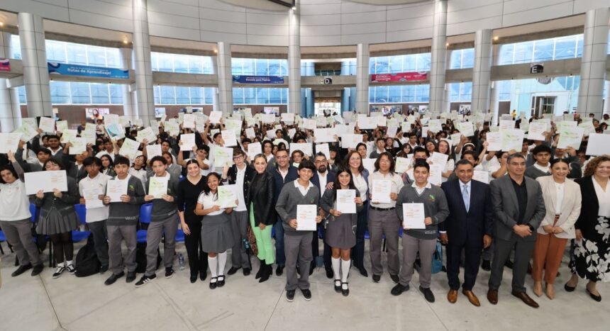 Entrega Martha Soto certificaciones Cambridge a estudiantes del CECyTEQ