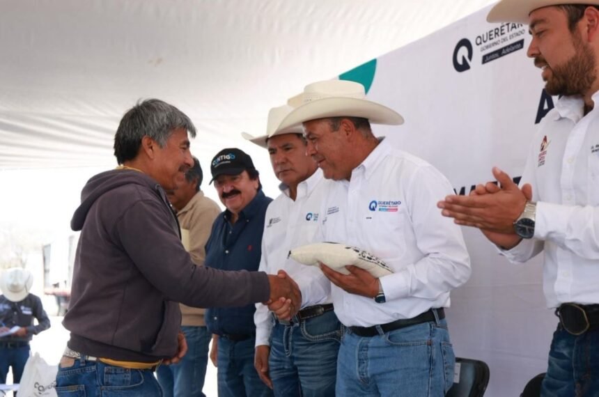 El secretario de Desarrollo Agropecuario, Rosendo Anaya, encabezó la entrega de apoyos consistentes en casi 80 toneladas de maíz para consumo humano, para el municipio de Ezequiel Montes, a un total de 281 productores y sus familias, que sufrieron afectación en 529 hectáreas de siembra de temporal y que vieron mermada su cosecha por la sequía prolongada o lluvias excesivas.