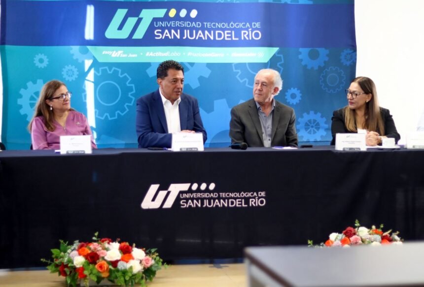 El rector de la Universidad Tecnológica de San Juan del Río (UT San Juan), Fernando Ferrusca Ortiz, y el presidente del Clúster de Tecnologías Digitales, Miguel Ángel Carapia González, firmaron un convenio que contribuirá en la formación de profesionistas que respondan a las necesidades de la industria tecnológica y que fortalezcan el ecosistema digital del estado.