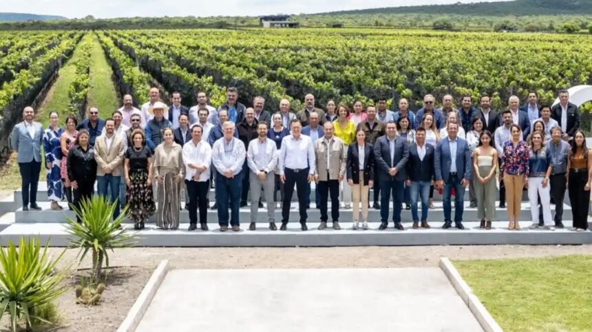 En una reunión de trabajo que congregó a representantes del clúster en el Viñedo Vinaltura, Kuri González, resaltó la labor de esta organización que mediante un plan estratégico, objetivos claros y una visión global compartida permite avanzar hacia la consolidación de la zona de vinos en Querétaro; en este marco, calificó al clúster como artífices de una plataforma de capacitación, promoción, vinculación, innovación y competitividad que ha permitido acreditar su valor.