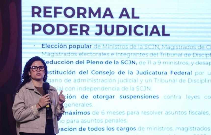 Ante López Obrador, el titular de Gobernación señaló la reforma al Poder Judicial, que menciona una elección popular, reducción del pleno de la Suprema Corte de Justicia de la Nación, sustitución del Consejo de la Judicatura, prohibición de otorgar suspensiones, plazos máximos y renovación. de todos los cargos.