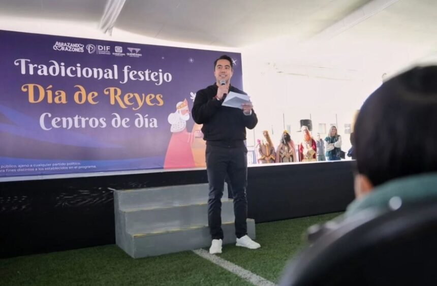 El presidente municipal de Querétaro, Felifer Macías, participó en la celebración del Día de Reyes organizada por el Sistema Municipal DIF, en la que convivió con 150 niñas y niños de los Centros de Día Njhöya, Jädi y Meni. El evento contó también con la presencia de la presidenta del Patronato del DIF Municipal, Adriana Olvera de Macías, y de la directora del organismo, Gabriela Valencia García.
