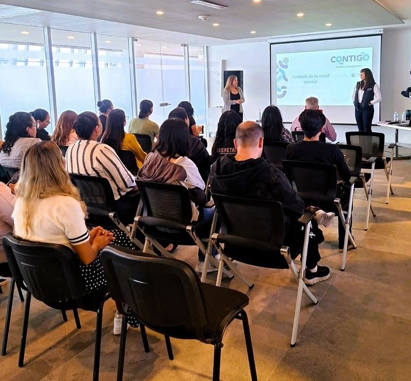 Con el objetivo de fortalecer el bienestar emocional y promover entornos laborales saludables, personal profesional especializado del Consejo Estatal Contra las Adicciones (CECA), adscrito a la Secretaría de Salud (SESA) del estado de Querétaro, impartió la plática “Salud Mental en el Ámbito Laboral”, dirigida a 30 trabajadoras y trabajadores de la Secretaría de Turismo.