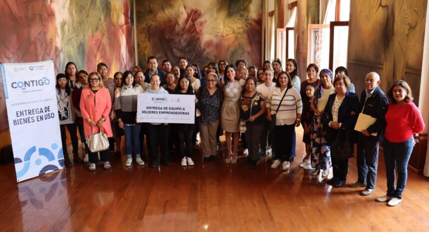 Durante el encuentro realizado en las instalaciones de la Secretaría del Trabajo, se hizo entrega de documentos que acreditan la propiedad del equipo o herramienta otorgada a 28 iniciativas productivas, en beneficio de 56 mujeres de la zona metropolitana, quienes concluyeron exitosamente su periodo de acompañamiento.