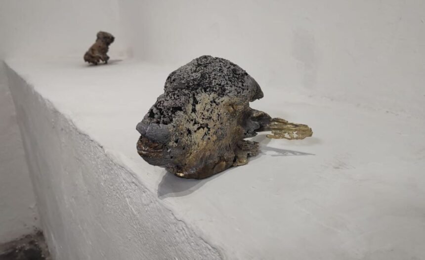 Las bolas hechas de plástico doméstico reciclado y prensado en pieles de animales domésticos, los latones y las fundiciones grises a carne perdida de cráneos de cabras y vacas son objetos que enfrentan al público a lo orgánico, cuya vida ha sido eliminada.
