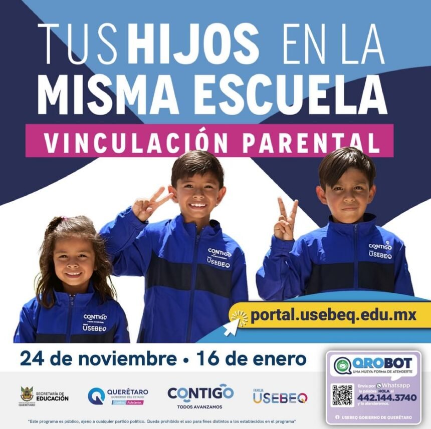 La coordinadora general de la Unidad de Servicios para la Educación Básica en el Estado de Querétaro (USEBEQ), Irene Quintanar Mejía, informó que las madres, padres de familia o tutores tienen hasta el 16 de enero para llevar a cabo, en el portal para Padres de Familia de la página de este Organismo, la vinculación de hermanos en educación básica.