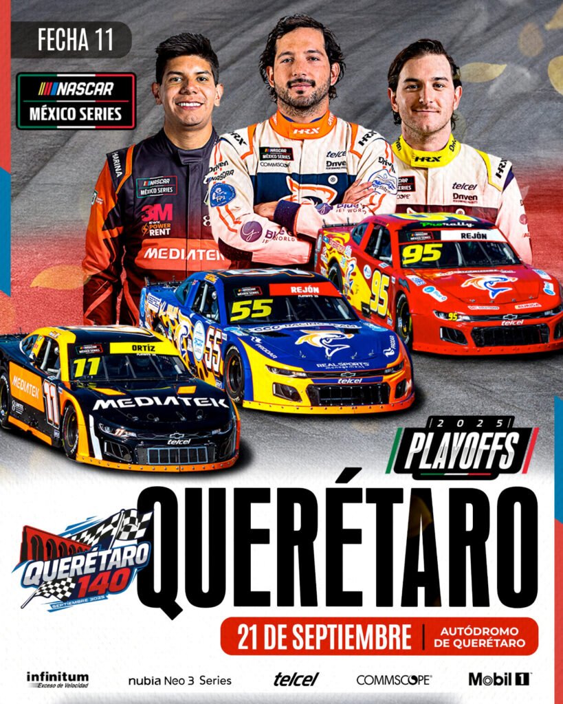 La etapa definitiva del serial más importante de Latinoamérica, NASCAR México Series, ha comenzado y tendrá su primera fecha clave este 21 de septiembre en el Autódromo de Querétaro, onceavo compromiso del calendario y segundo de los playoffs, tras el cual se dará el primer recorte para dar paso al grupo de los 7 contendientes.