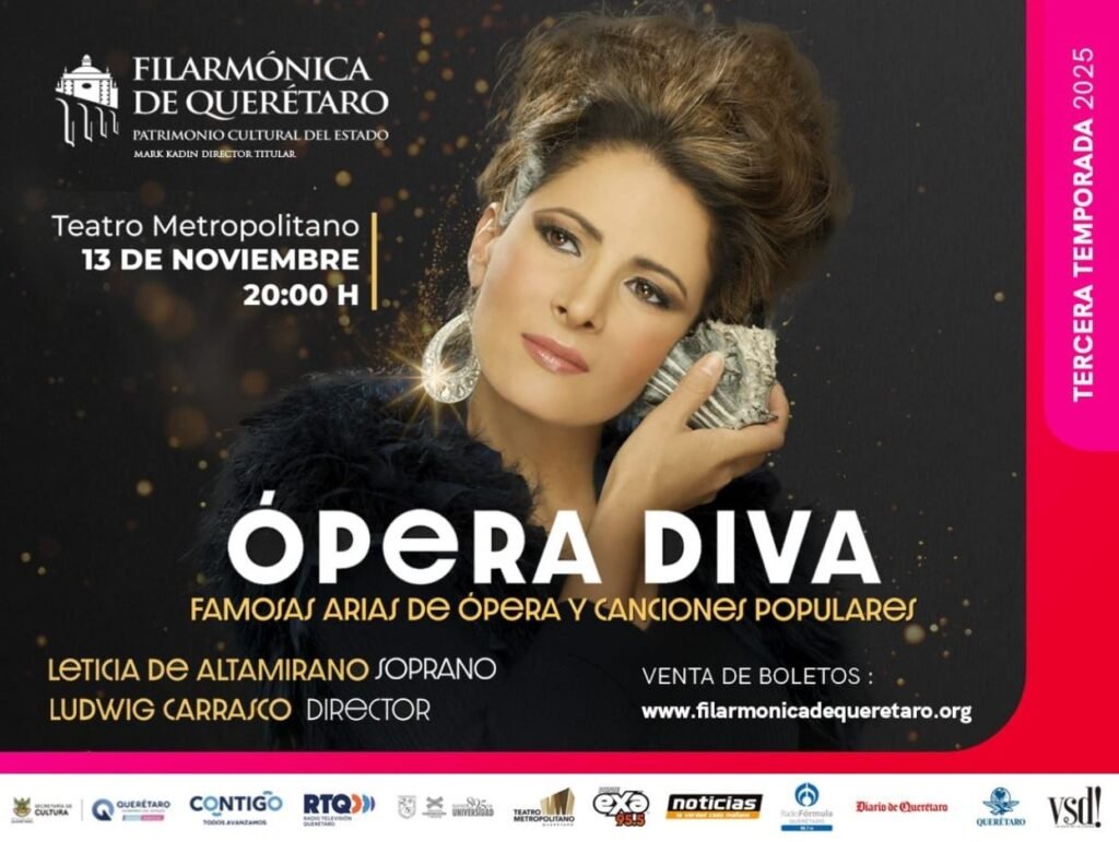 La Orquesta Filarmónica del Estado de Querétaro (OFEQ) invita al público a vivir una experiencia única con “Ópera Diva: Una noche para recordar”, evento que promete colcarse entre los más memorables de la temporada y que se presentará el 13 de noviembre, a las 20:00 horas, en el Teatro Metropolitano.