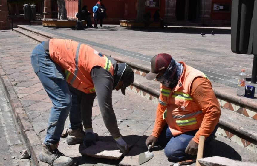 Marco Álvarez explicó que, a través del trabajo que realizan las cuadrillas, se trabaja para contar con un Centro Histórico donde se privilegia la movilidad del peatón; por ello, se llevan a cabo reparaciones de banquetas, guarniciones y registros ubicados en el primer cuadro de la ciudad, así como el cambio y colocación de luminarias, con el objetivo de contar con entornos seguros, tal como lo establece el Plan Orden.