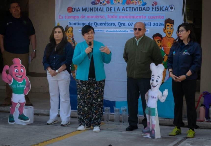 En el marco del Día Mundial de la Actividad Física y del Día Mundial de la Salud 2026, la titular de la Secretaría de Salud (SESA) del estado de Querétaro, María Martina Pérez Rendón, encabezó un evento realizado en el área de estacionamiento de las oficinas administrativas, donde se impulsaron acciones enfocadas a la prevención y el fortalecimiento de estilos de vida saludables entre el personal.
