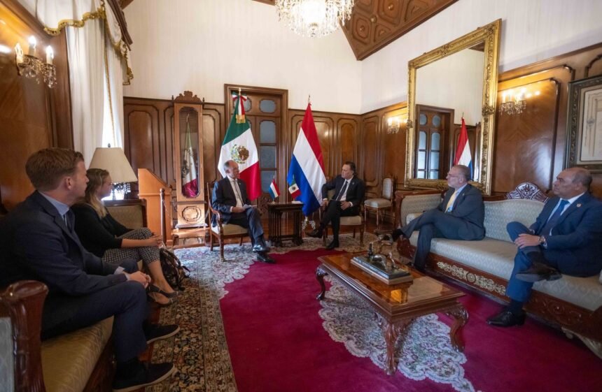 El gobernador, Mauricio Kuri González, sostuvo un encuentro con el embajador del Reino de los Países Bajos en México, André Driesse, donde abordaron diversos temas, principalmente en materia agroindustrial, así como nuevas tecnologías, educación y seguridad. Ahí, el mandatario estatal dio a conocer que en Querétaro existe un entorno favorable para las nuevas inversiones y los invitó a seguir atrayendo más inversión.