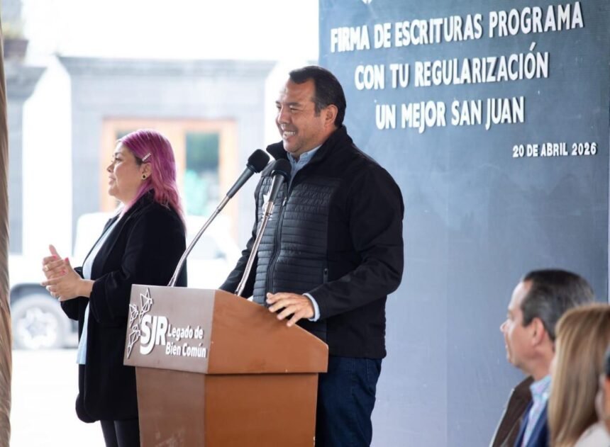 Para brindar tranquilidad y certeza jurídica a las familias sanjuanenses sobre su patrimonio, el presidente municipal de San Juan del Río, Roberto Cabrera Valencia, encabezó la firma de escrituras del Programa “Con Tu Regularización Un Mejor San Juan” en la Plaza Independencia, donde 146 escrituras públicas fueron firmadas.