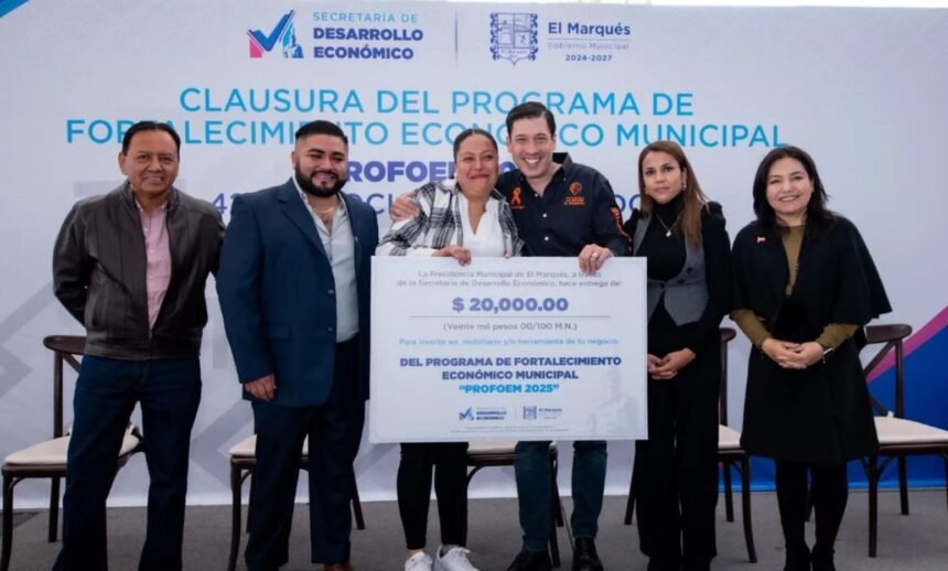 El alcalde de El Marqués, Rodrigo Monsalvo Castelán, encabezó la clausura del Programa de Fortalecimiento Económico Municipal (PROFOEM), iniciativa con la que 429 micro y pequeños empresarios recibieron recursos destinados a mejorar sus herramientas de trabajo y fortalecer la actividad comercial del municipio.