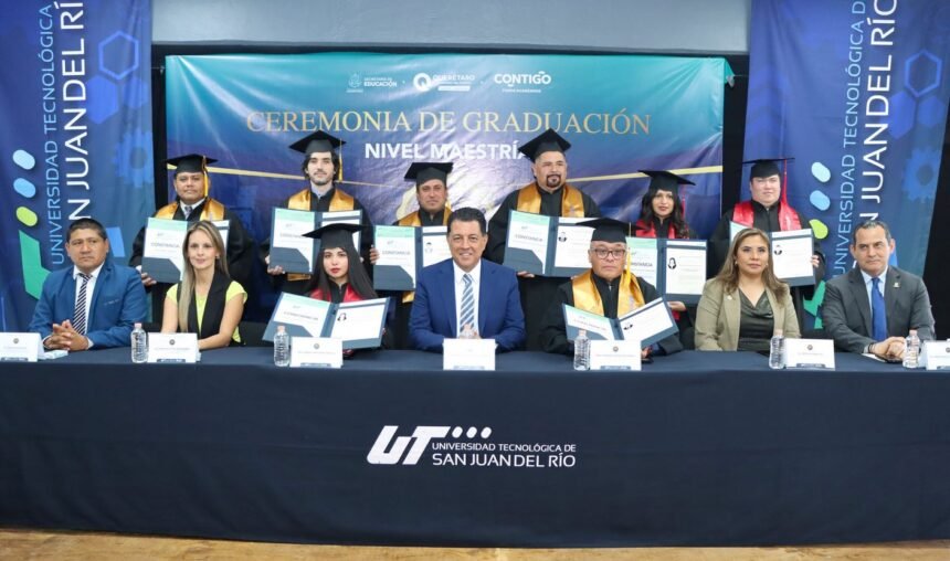 Los ocho integrantes de la Tercera Generación de la Maestría en Tecnología Aplicada de la Universidad Tecnológica de San Juan del Río (UT San Juan), recibieron su título de manos del rector Fernando Ferrusca Ortiz, a quienes les reconoció la disciplina y compromiso que tuvieron para enfrentar desafíos académicos y profesionales cada vez más exigentes, esfuerzo que dijo, tiene como recompensa la especialización profesional.