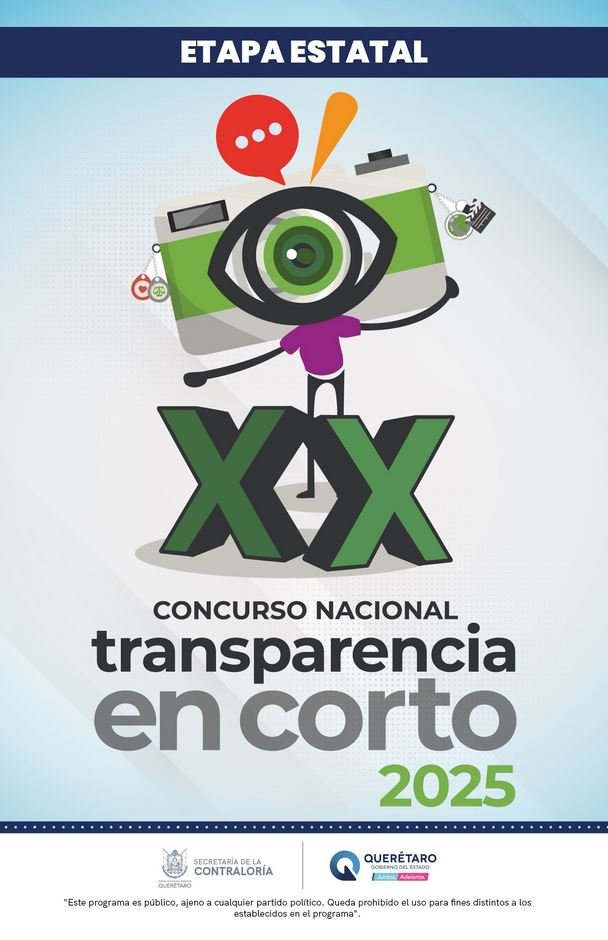 La Comisión Permanente de Contralores Estados Federación y la Secretaría de la Contraloría del Poder Ejecutivo del Estado de Querétaro, invitan a los jóvenes al Concurso de Transparencia en Corto 2025. El propósito es que, a través de un video, las juventudes exploren, denuncien o propaguen soluciones ante el fenómeno de la desinformación.