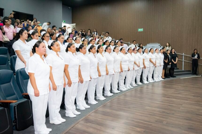 La secretaria de Salud del estado, María Martina Pérez Rendón presidió la ceremonia de Imposición de Cofias a las alumnas de la Licenciatura de Enfermería de la Universidad de las Mujeres ubicada en el municipio de Querétaro. Durante su mensaje destacó que la enfermería es uno de los pilares fundamentales del Sistema Estatal de Salud al participar en diferentes ámbitos para otorgar una atención de calidad a la población. Subrayó también el compromiso, vocación y ética que distinguen a esta noble profesión.