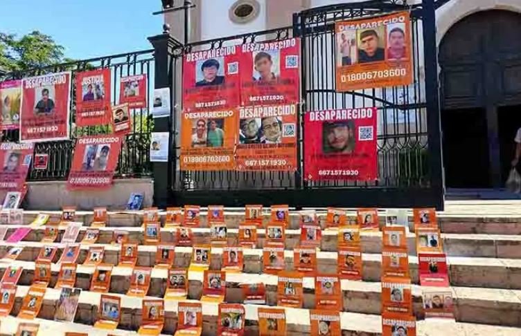 En el centro de Culiacán, cerca de la Catedral de Culiacán, familiares de las víctimas han colocado más de 200 imágenes acompañadas de nombres y fechas, como una forma de hacer visible la magnitud de la tragedia que enfrentan cientos de hogares afectados por estas ausencias.