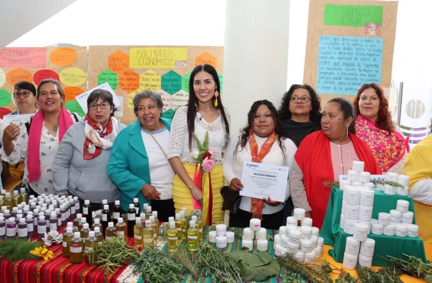 La secretaria del Trabajo, Liliana San Martín Castillo, encabezó la entrega de constanciasde finalización de cursos de capacitación para el autoempleo en el municipio de Amealco, mediante los cuales se beneficiaron 42 mujeres quienes cursaron los talleres de medicina tradicional y herbolaria, así como elaboración de artesanías con bordado otomí.