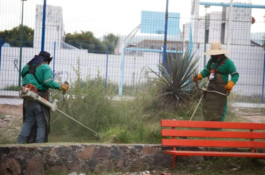 Para fortalecer la imagen urbana en el municipio de San Juan del Río, el alcalde sanjuanense, Roberto Cabrera Valencia, y el secretario de Servicios Públicos Municipales, Ernesto Mora Rico, supervisaron los trabajos de mantenimiento y limpieza que se llevaron a cabo en el parque de la colonia Hacienda San Juan.