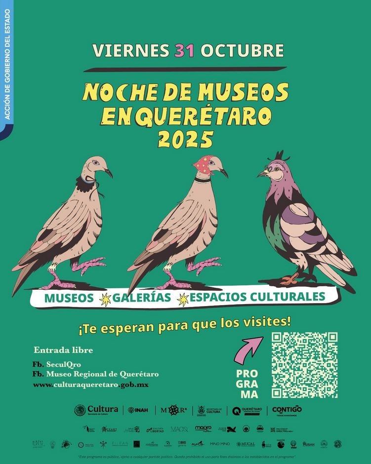 Con más de 50 actividades como talleres, conferencias, exposiciones, conciertos, visitas guiadas, presentaciones de libros, altares de muertos y obras de teatro, el próximo 31 de octubre se llevará a cabo la segunda edición 2025 de La Noche de Museos en Querétaro, esta vez con la paticipación de 25 museos, galerías y otros espacios culturales, públicos y privados, de cuatro municipios del estado.
