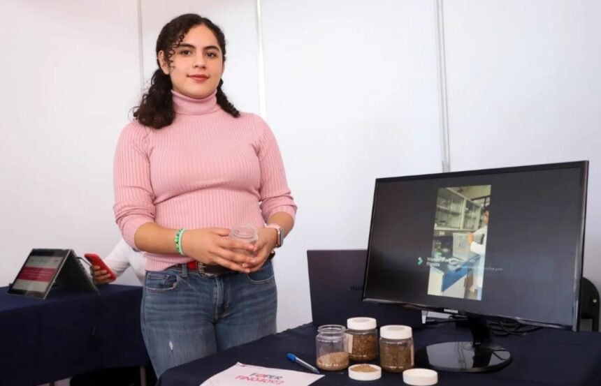 La estudiante de cuarto semestre de Ingeniería Agroindustrial en el campus Concá, Sofía Andablo Rico, explicó que el proyecto titulado “Elaboración de harina a partir de la zophobas morio” se desarrolló mediante la aplicación de tres tratamientos distintos, uno de ellos como control, enfocados en elevar el contenido proteico de la larva. Para ello, se modificó su dieta con subproductos derivados de pollo y pescado, específicamente huesos y vísceras, los cuales fueron sometidos a procesos de cocción, molienda y secado.